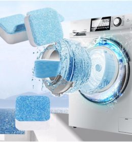 1. Masukkan 3-5 pcs tablet pembersih mesin cuci ke dalam tabung mesin cuci yang kosong